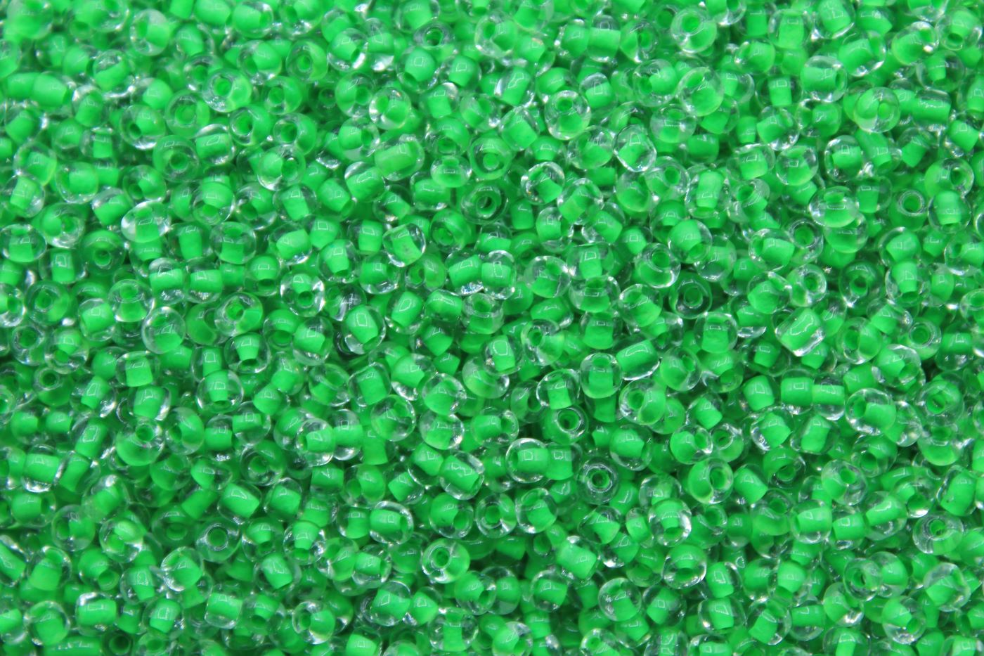 8/0 – Green Colourlined – Price per gram. Size 8/0 – approx 3mm. Glass beads. Approx 30 – 35 beads per gram.