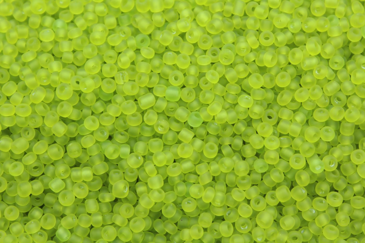 8/0 – Green Light Transparent Matte – Price per gram. Size 8/0 – approx 3mm. Glass beads. Approx 30 – 35 beads per gram.