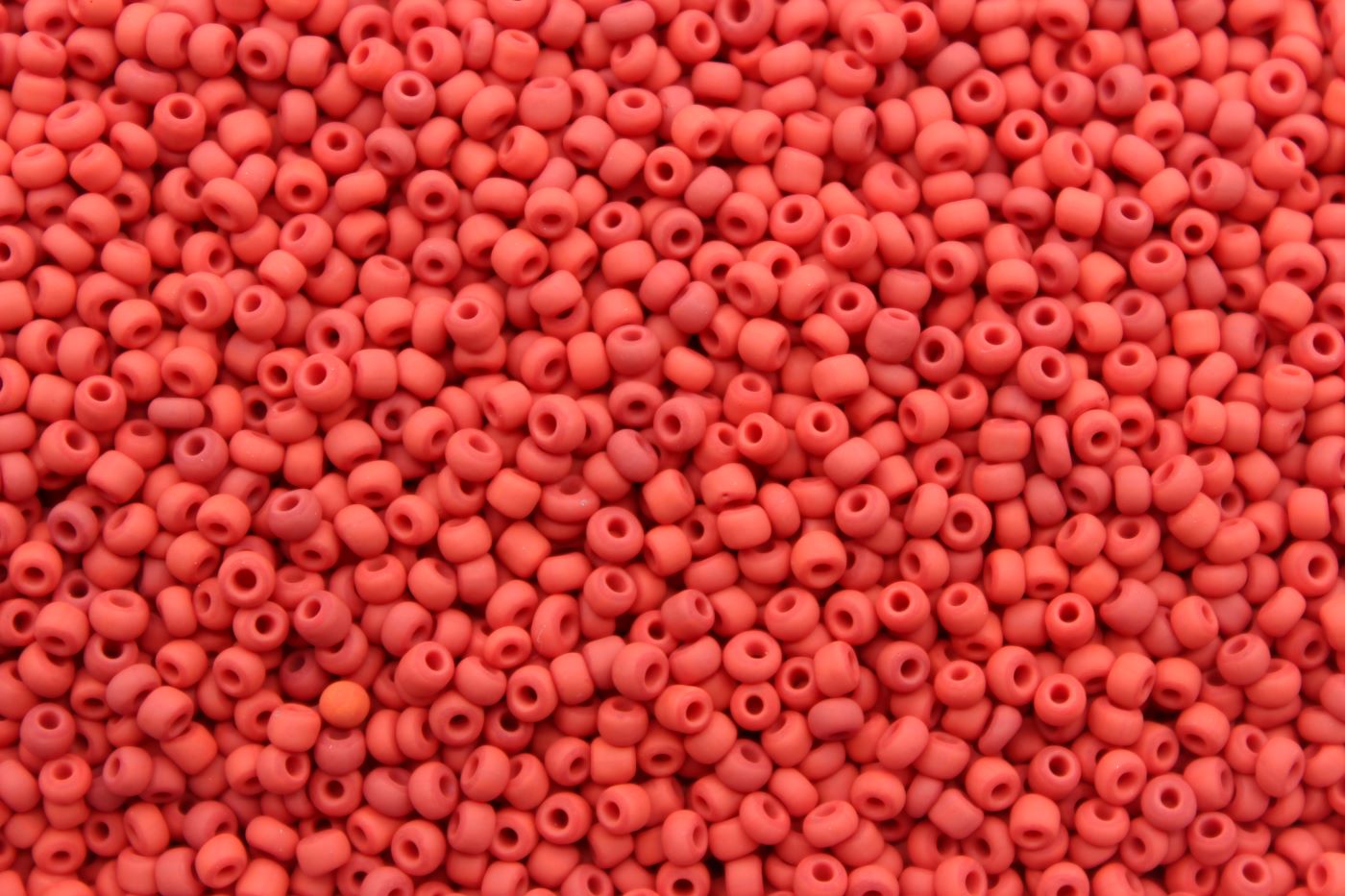 8/0 – Red Opaque Matte – Price per gram. Size 8/0 – approx 3mm. Glass beads. Approx 30 – 35 beads per gram.