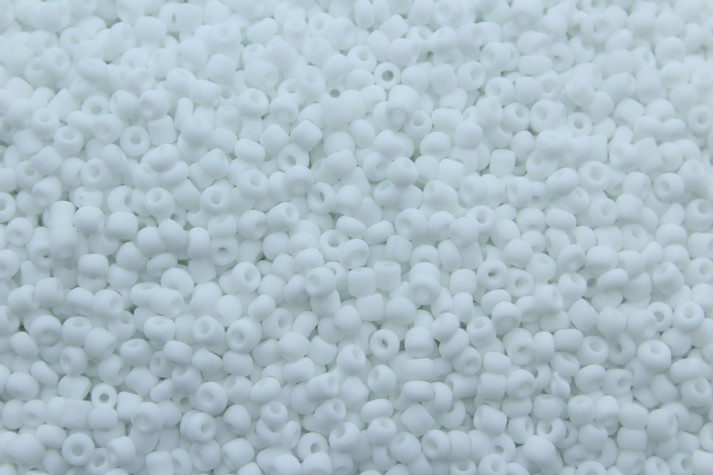 8/0 – White Opaque Matte – Price per gram. Size 8/0 – approx 3mm. Glass beads. Approx 30 – 35 beads per gram.