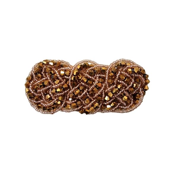 85 x 38mm Beaded Weave – Gold. Motif is made of gold silverlined glass seed beads and metallic gold glass bicones.