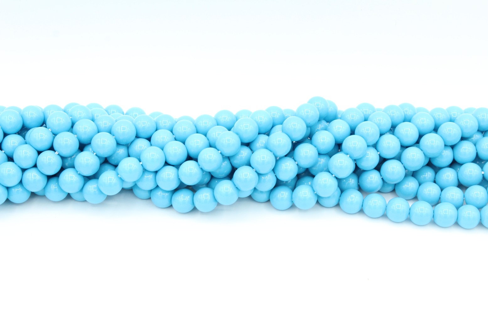8mm Filler Bead – Aqua – 40cm Strand. 8mm Bead size. Glass bead. Round shape.