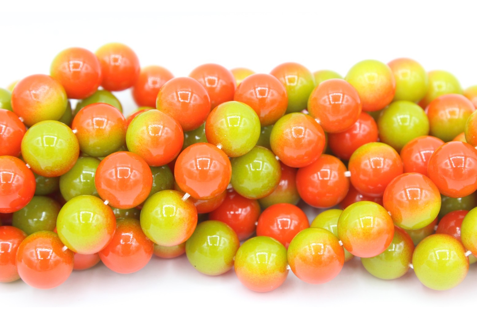 8mm Filler Bead – Green / Red – 40cm Strand. 8mm Bead size. Glass bead. Round shape.