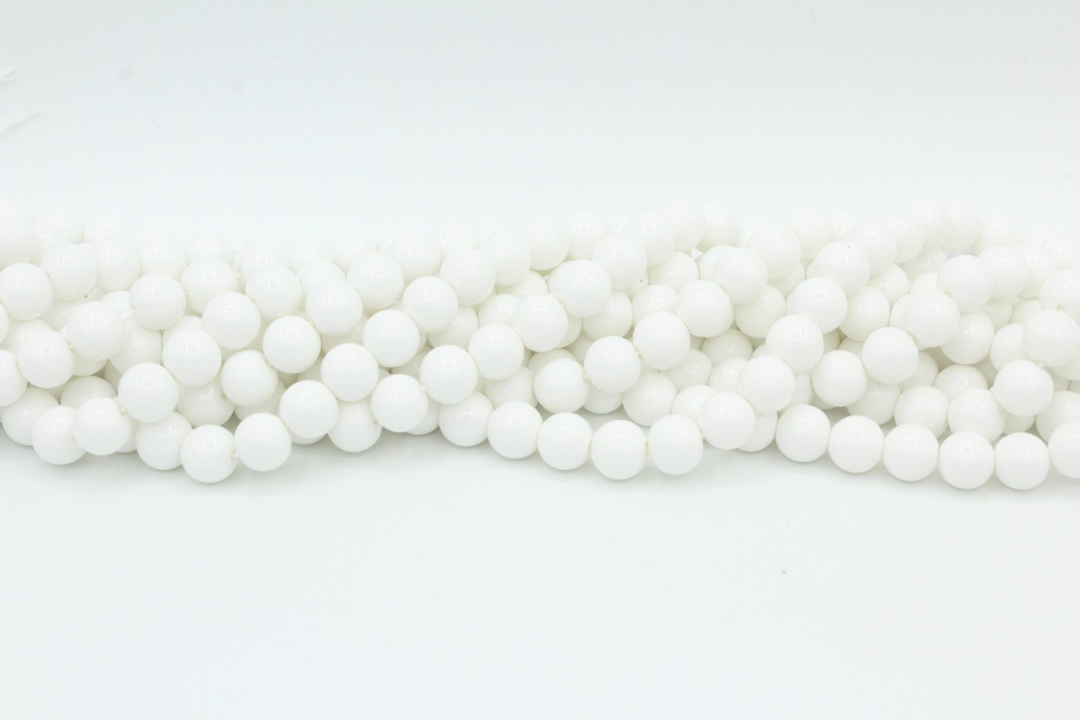 8mm Filler Bead – White – 40cm Strand. 8mm Bead size. Glass bead. Round shape.