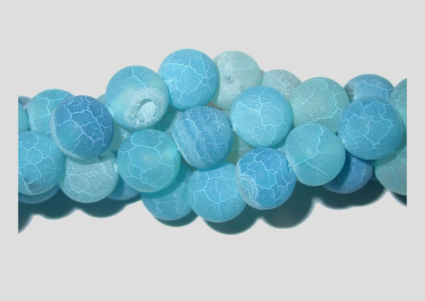 Agate – 10mm Round – Crack / Blue – 37cm Strand. 10mm bead size. Dyed. Please contact us to purchase individual pieces.