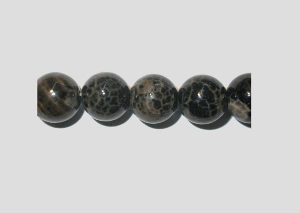 Agate – 12mm Round – 37cm Strand. Each bead has a mixture of black and brown colours. Please contact us to purchase individual pieces.