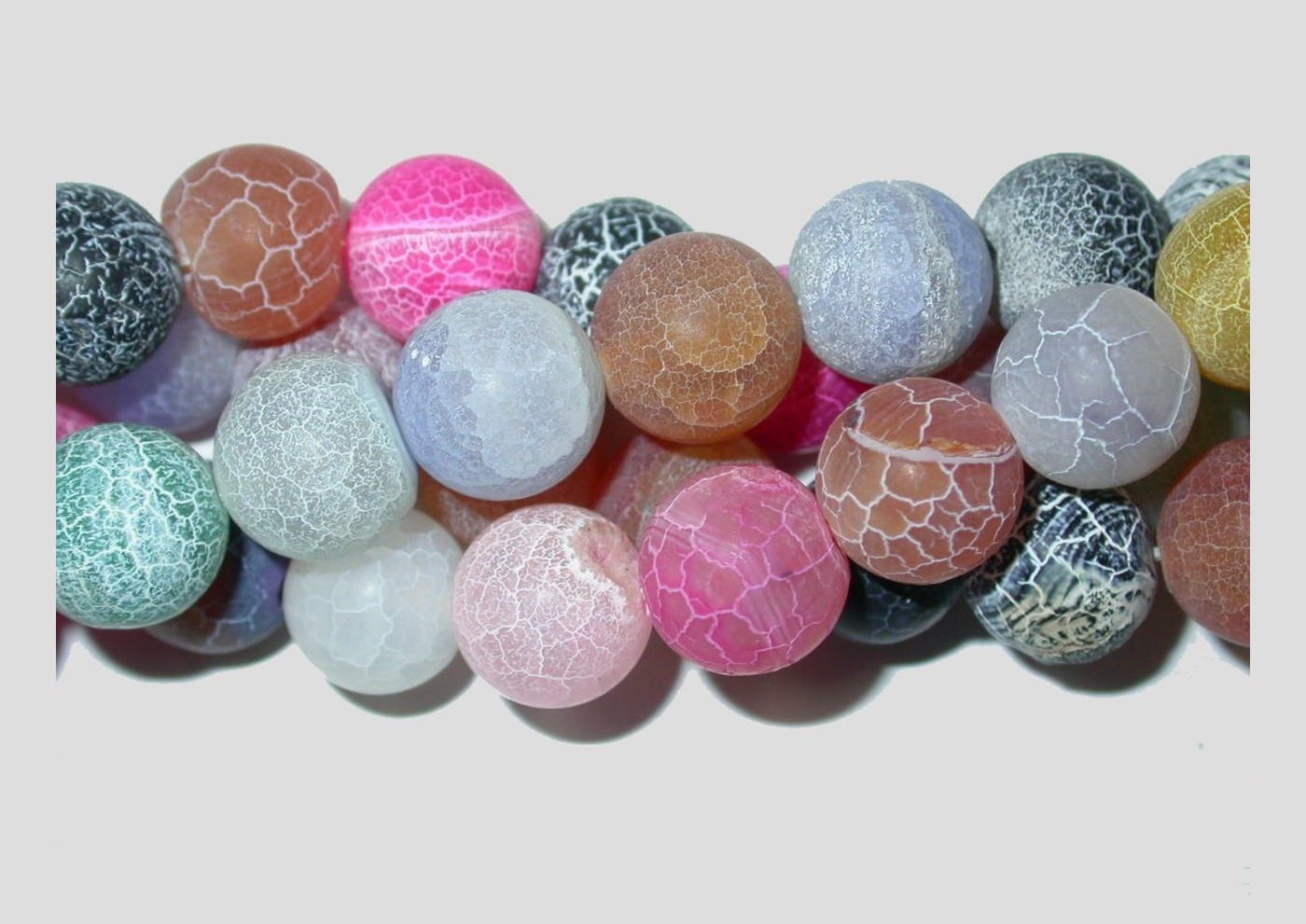 Agate – 12mm Round – Crack / Multi Colour – 38cm Strand. 12mm bead size. Dyed. Please contact us to purchase individual pieces.