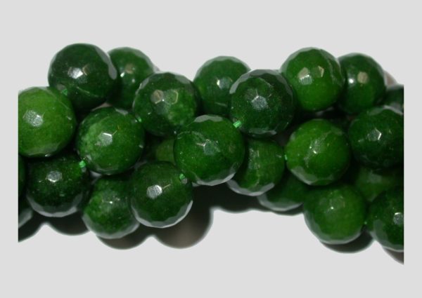Agate – 12mm Round Faceted – Fern Green – 36cm Strand. 12mm bead size. Dyed. Please contact us to purchase individual pieces.