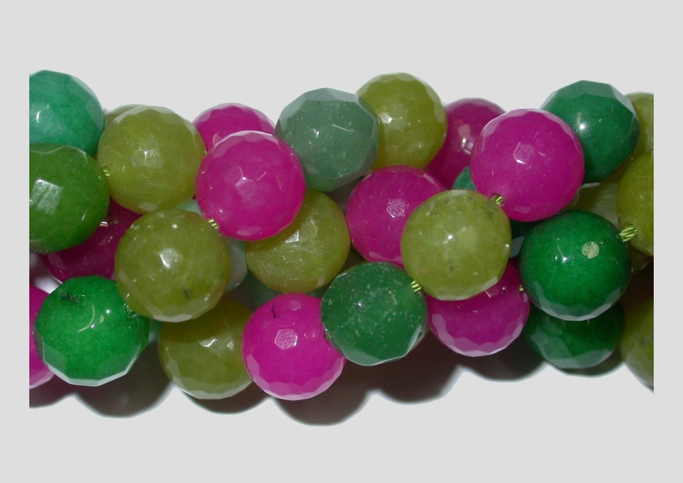 Agate – 12mm Round Faceted – Mix A – 36cm Strand. 12mm bead size. Dyed. Please contact us to purchase individual pieces.