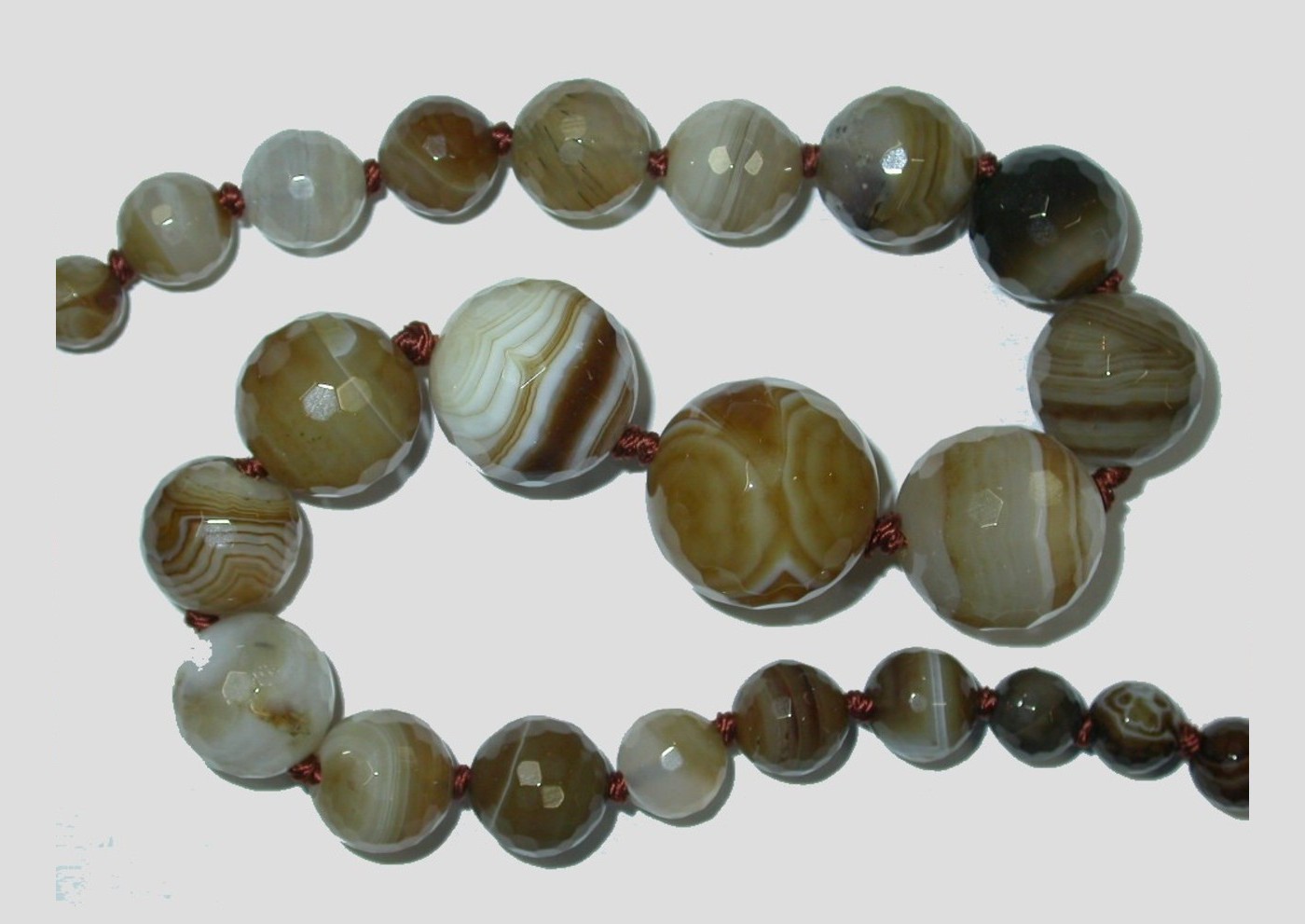 Agate – Faceted Round – 47cm Strand. Bead size range from 8mm – 20mm. Please contact us to purchase individual pieces.