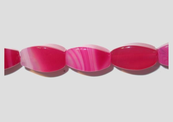 Agate – Pink – 16 x 9mm Fac Oval – 39cm Strand. Dyed gemstone. Please contact us to purchase individual pieces.
