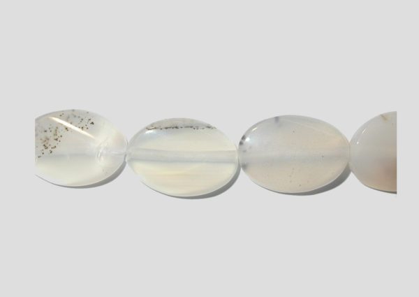 Agate – Twist Oval – 26 x 16mm – 38cm Strand – White. Please contact us to purchase individual pieces.