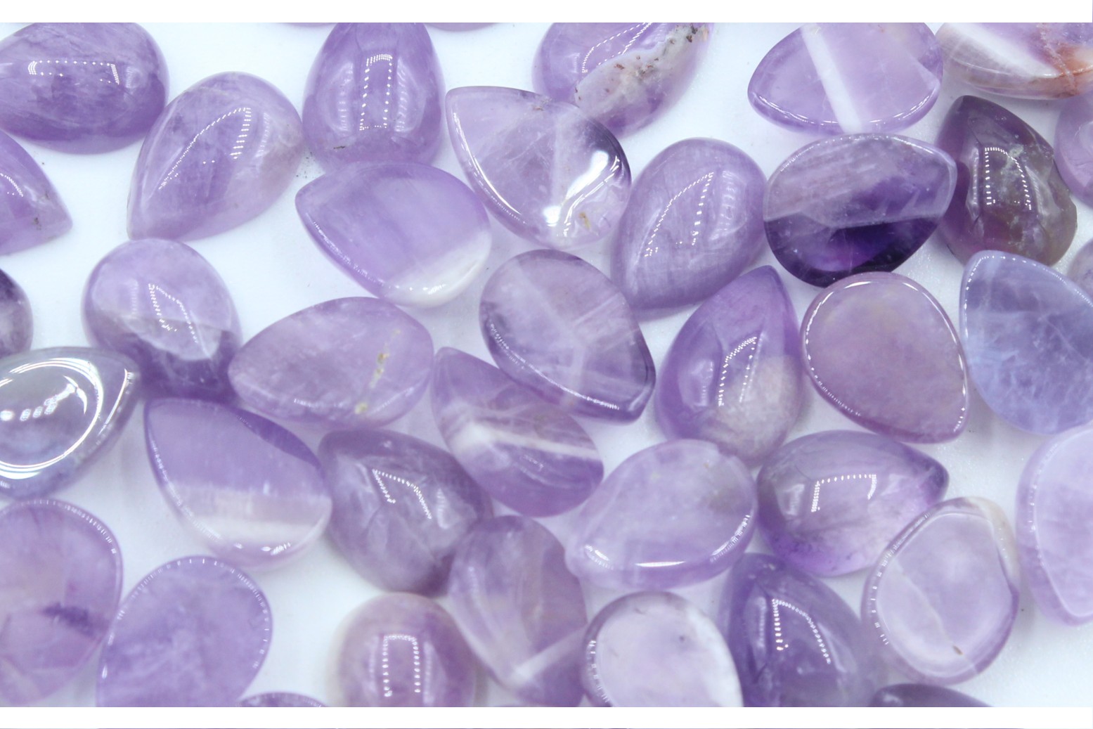 Amethyst Cabochon – Tear Drop – 6 x 9mm. Flat Back. Smooth Top. No Hole. Tear Drop shape.