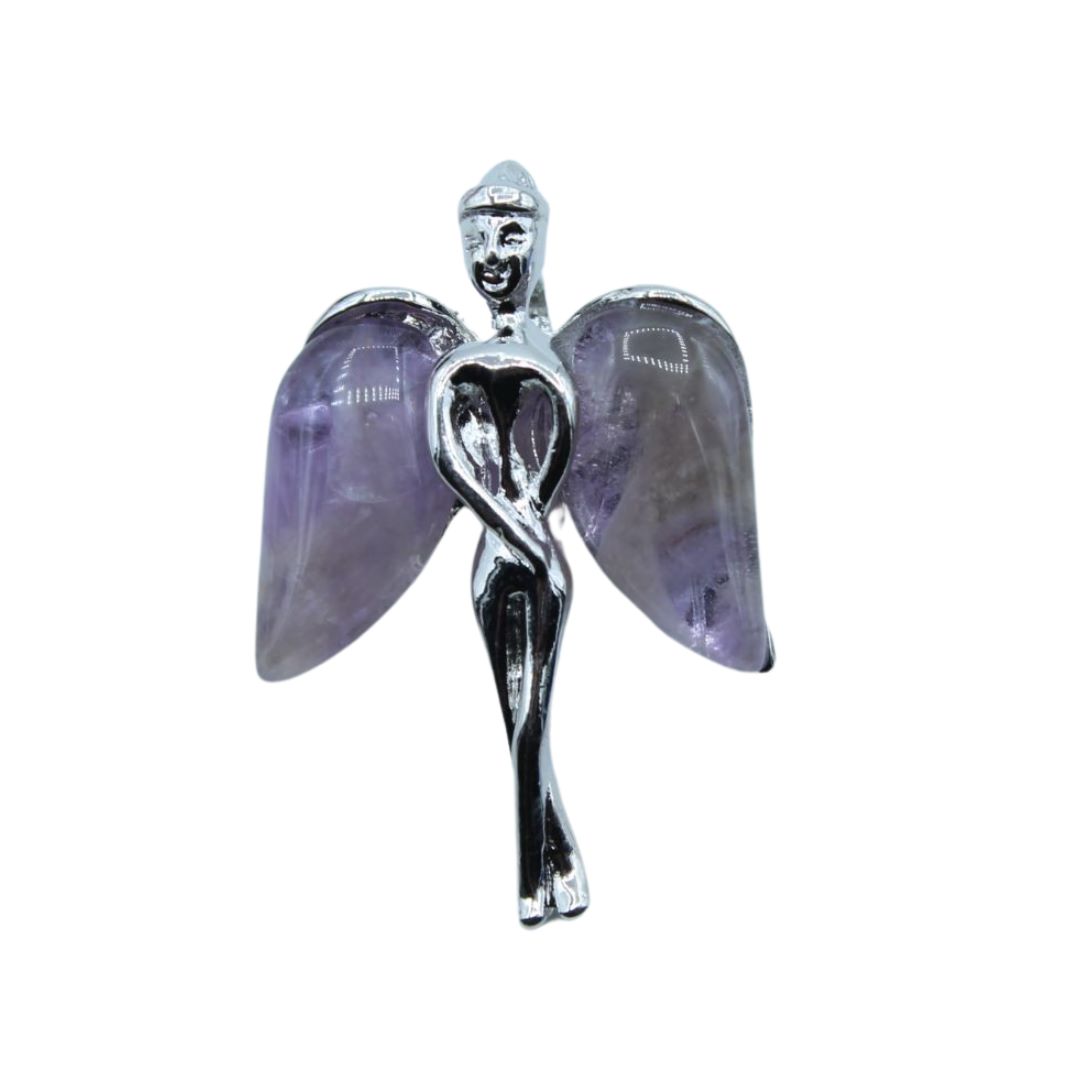 Angel Pendant / Amethyst – 37mm.  37mm Angel pendant size. 17 x 10mm Cabochon Wings.  Lapis – Dyed colour.   Antique Silver colour pendant.