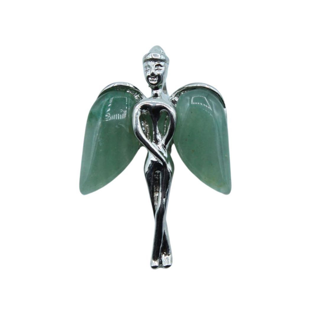 Angel Pendant / Aventurine – 37mm. 37mm Angel pendant size. 17 x 10mm Cabochon Wings. Lapis – Dyed colour. Antique Silver colour pendant.