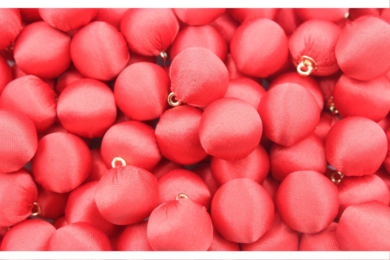 Ball Drop – 14mm – Satin Red. Fabric covered bead with gold coloured loop.