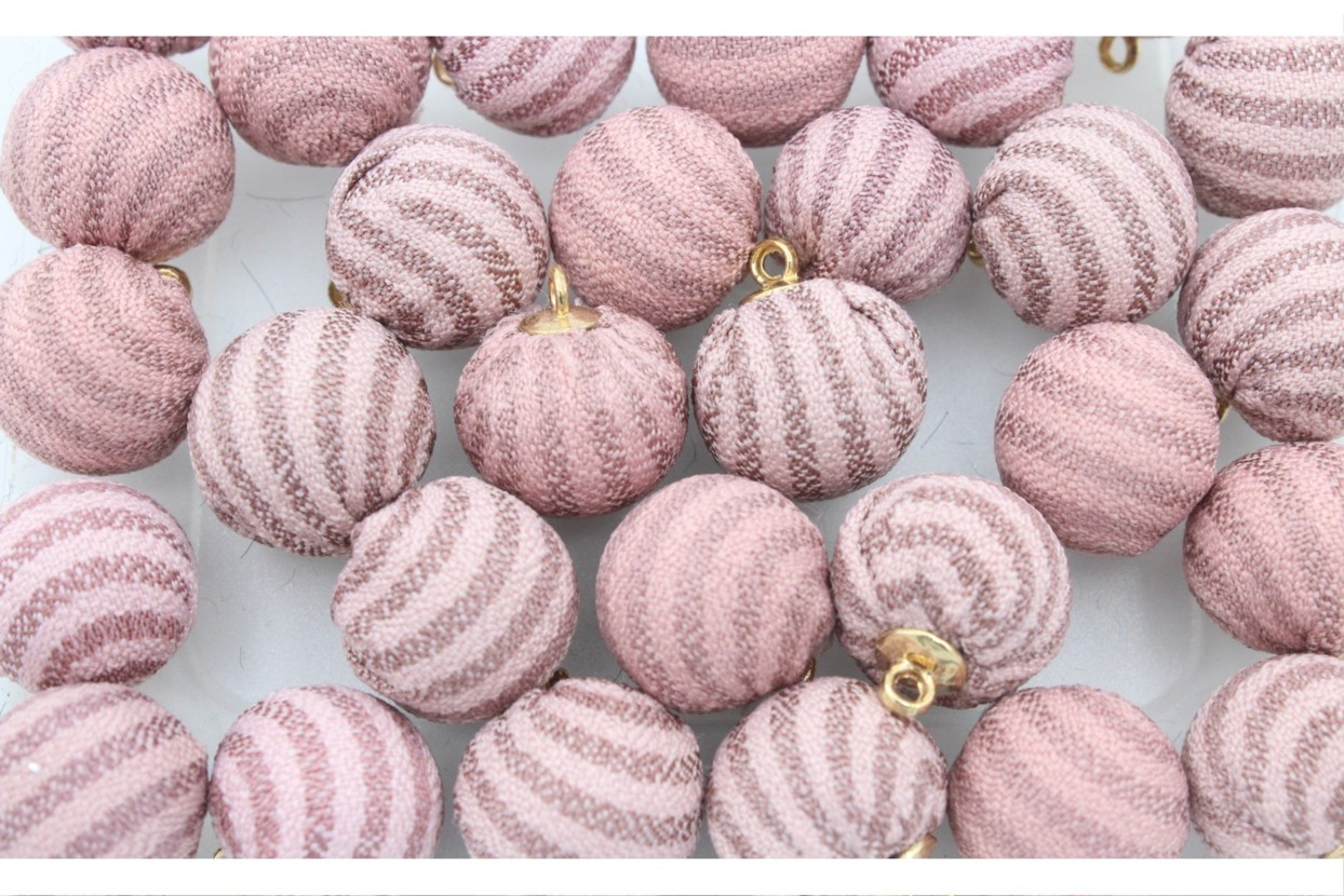 Ball Drop – 16mm – Ant Pink Stripe. Fabric covered bead with gold coloured loop.