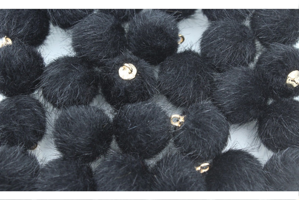 Ball Drop – 16mm – Black Pom Pom. Fabric covered bead with gold coloured loop.