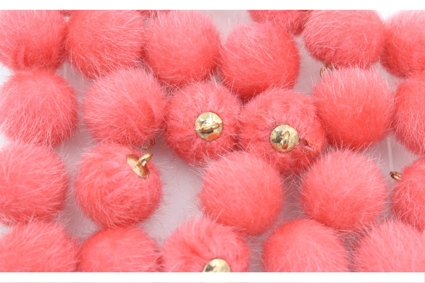 Ball Drop – 16mm – Pink Pom Pom. Fabric covered bead with gold coloured loop.