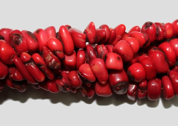 Bamboo Coral Pebbles – Red. 40cm Strand. Dyed. 15 – 20mm approx bead size.