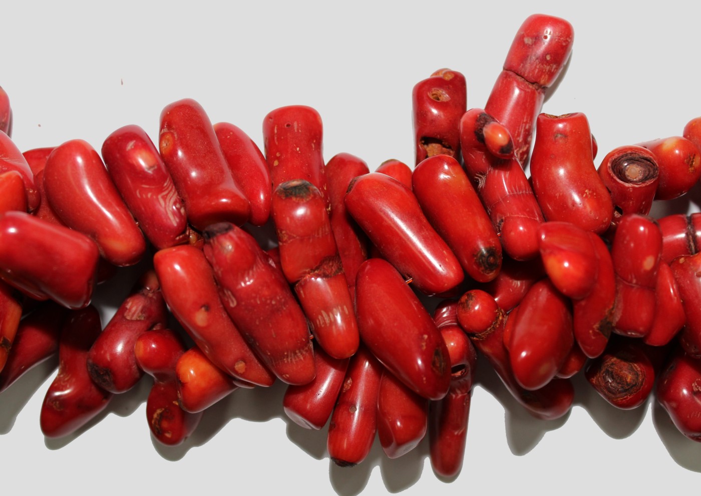 Bamboo Coral Teeth – Large – Red. 40cm Strand. Dyed. 20 – 35mm approx bead size.