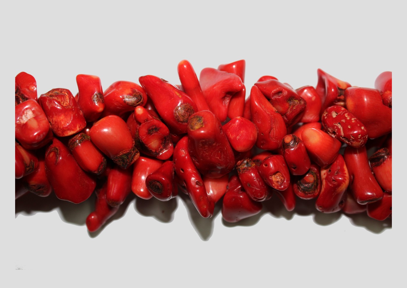 Bamboo Coral Teeth – Small – Red. 40cm Strand. Dyed. 10 – 16mm approx bead size.