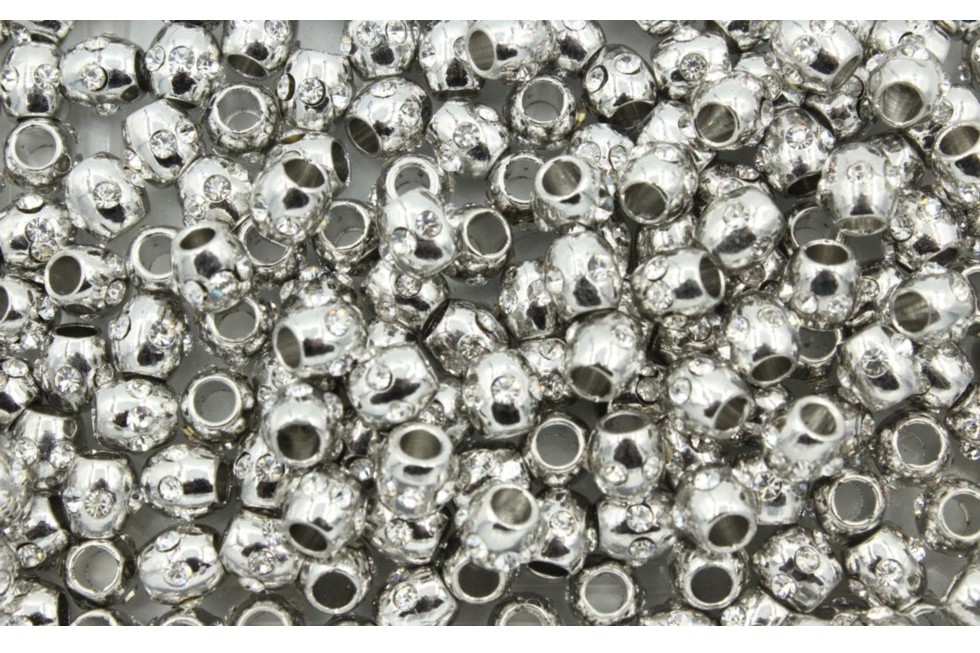 Barrel / Crystal – 6mm – Antique Silver. Quality product. Metal Bead. Plated.