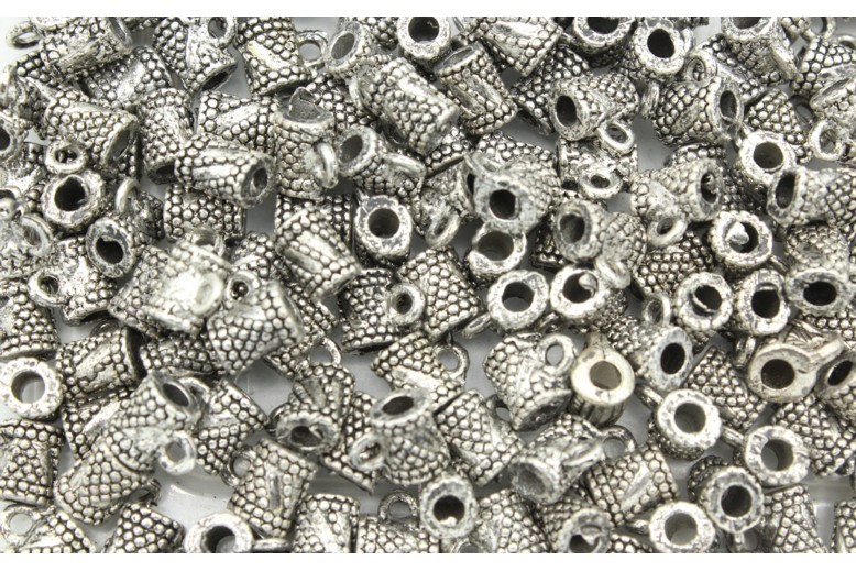 Barrel / Loop – 7 x 5mm – Dark Antique Silver. Quality product. 4mm Hole. Metal Bead. Plated.