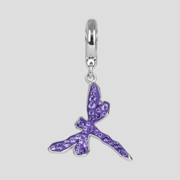 BeCharmed Charm – Dragonfly – 18mm – Tanzanite. Swarovski Crystal. Rhodium Components. Please contact us to order colours not displayed.