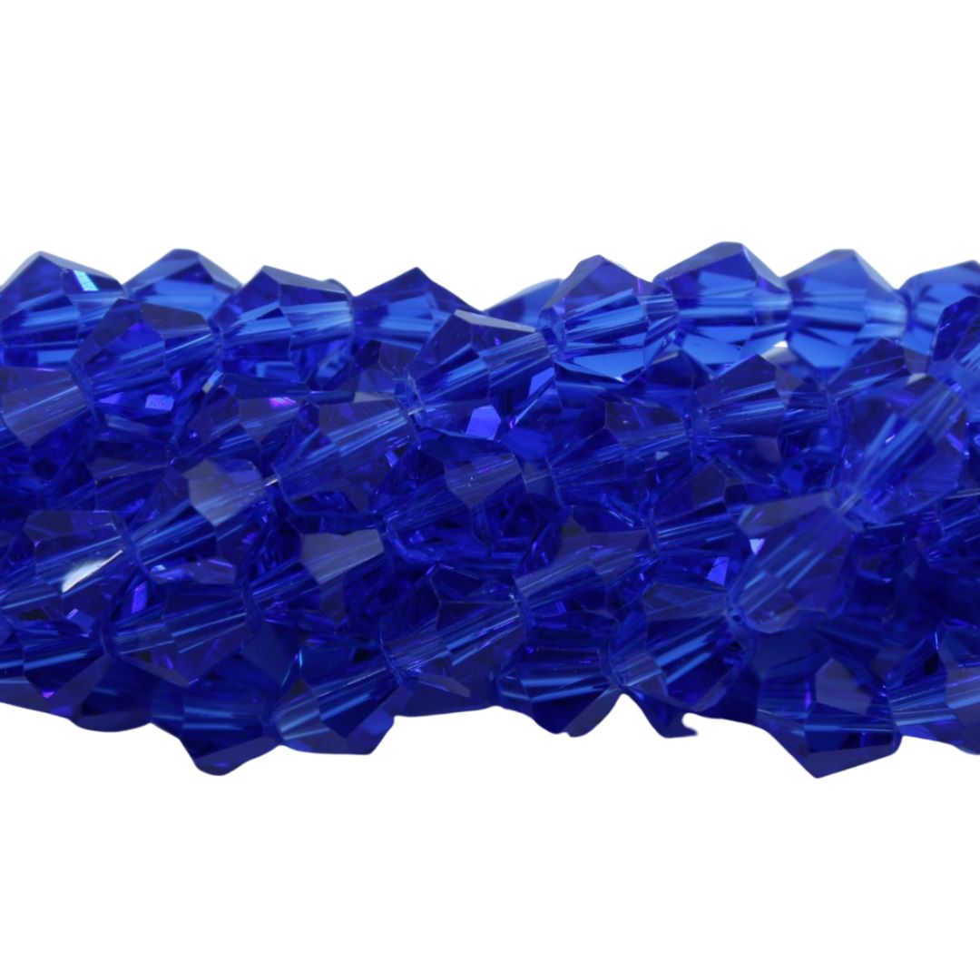 Bicone – 4mm – 37cm Strand – Sapphire. 4mm Bead Size. Glass bead. Quality product.