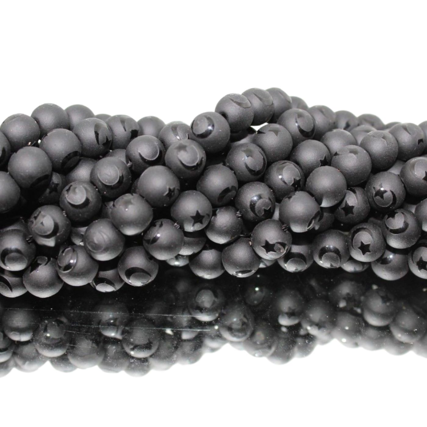 Black Agate – 8mm Round – Pattern B – 40cm Strand. 8mm bead size.