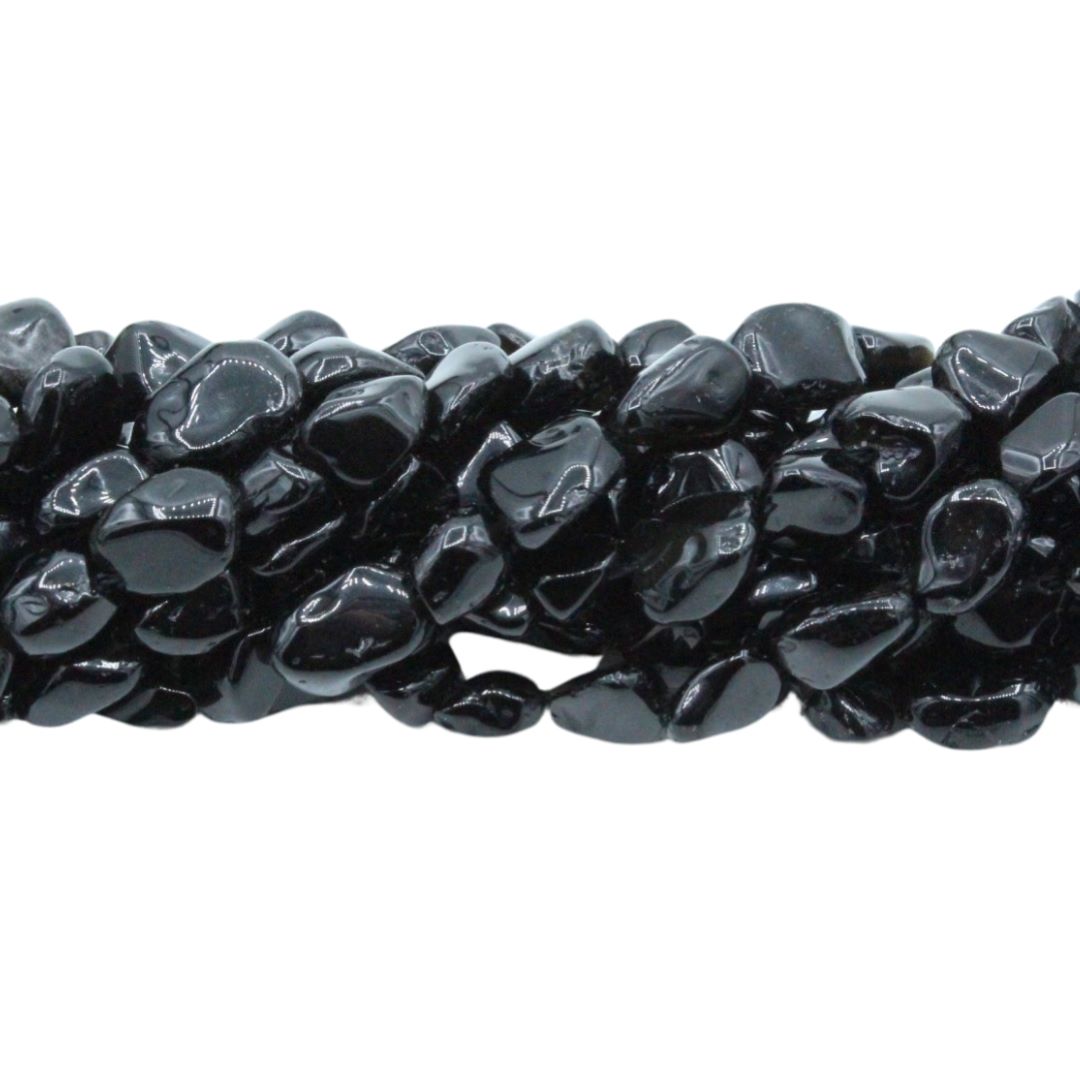 Black Agate – Tumblestone – 5 to 8mm – 39cm Strand.