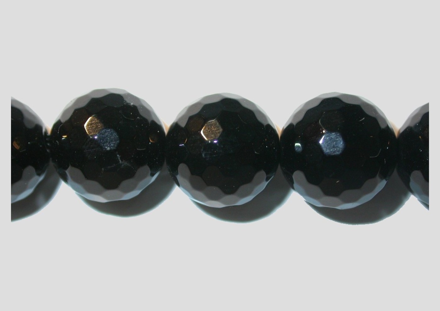 Black Onyx – Faceted World Bead – 12mm – 19cm Strand. Please contact us to purchase individual pieces.