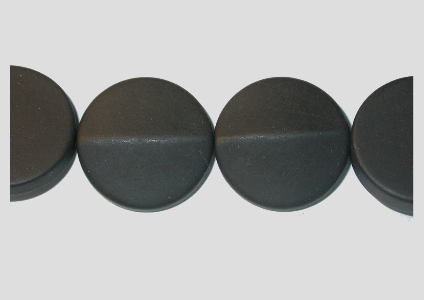 Black Stone – 25mm Coin – 20cm Strand. Please contact us to purchase individual pieces.