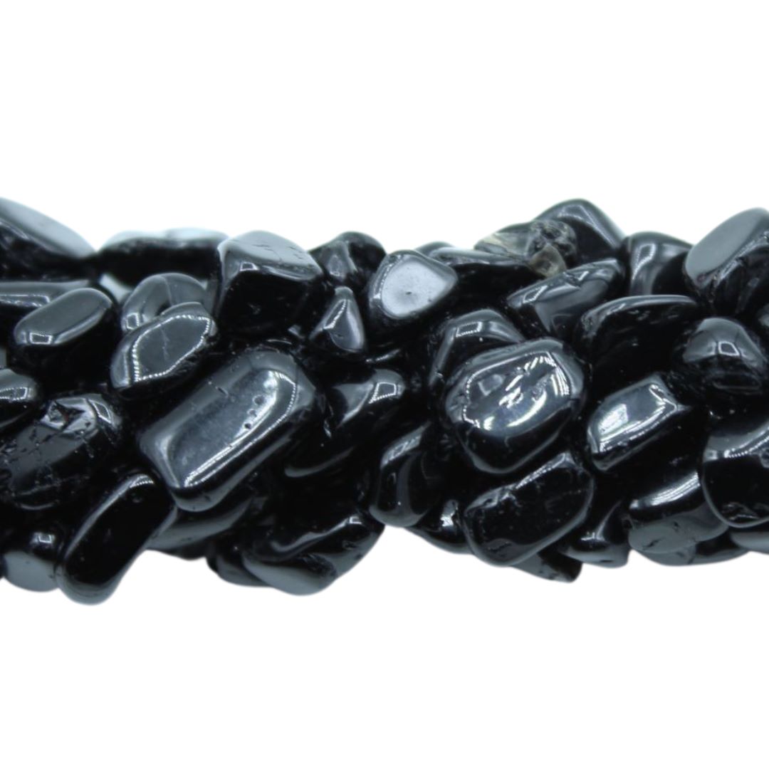 Black Tourmaline – 5-8mm Tumblestone – 38cm Strand. Approx 5 – 8mm bead size.