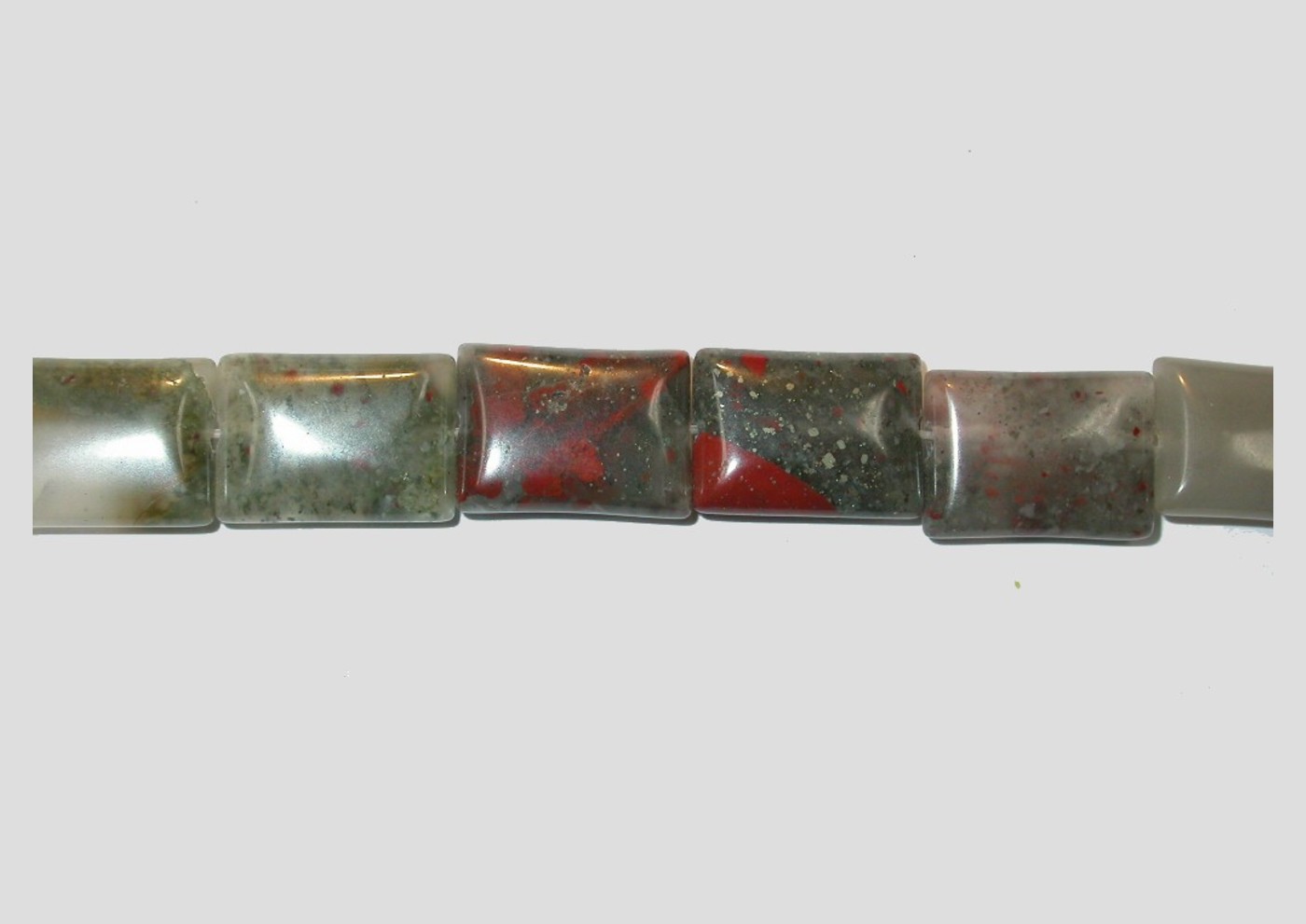 Blood Jasper – Rectangle – 17 x 13mm – 40cm Strand. Flat rectangle shape. Please contact us to purchase individual pieces.