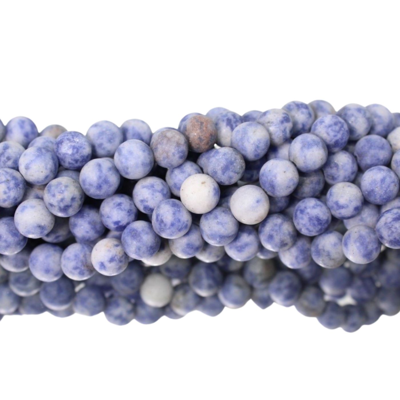 Blue Spot Jasper Matte – 8mm Round – 39cm Strand. 8mm bead size. Please contact us to purchase individual pieces.
