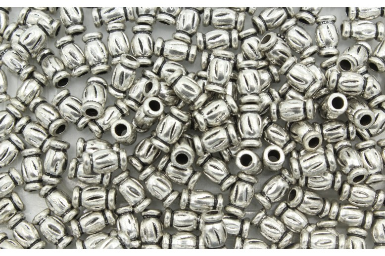 Bon Bon Bead – 8 x 4mm – Antique Silver. Quality product. Metal Bead. Plated.