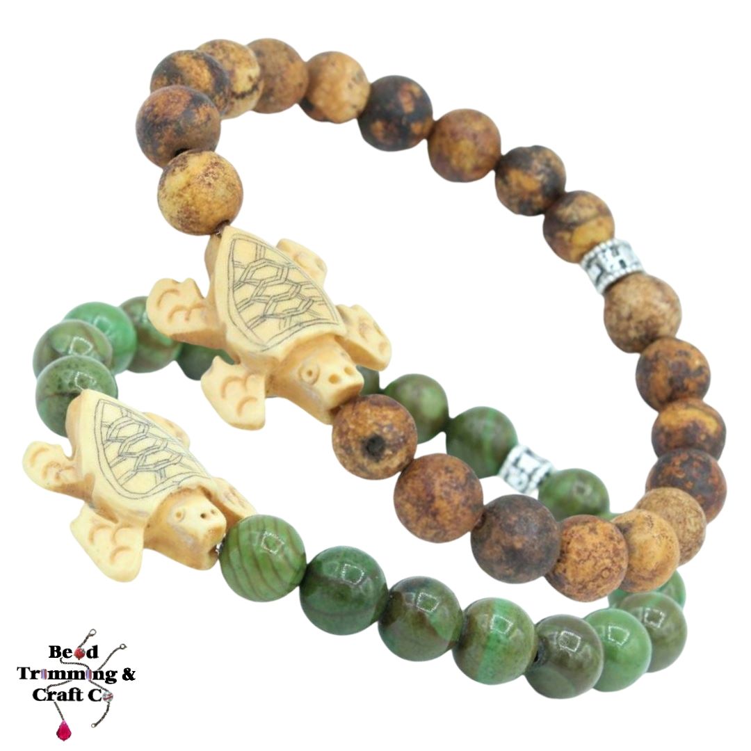 Bone Turtle / Gemstone – Stretch Bracelet.
