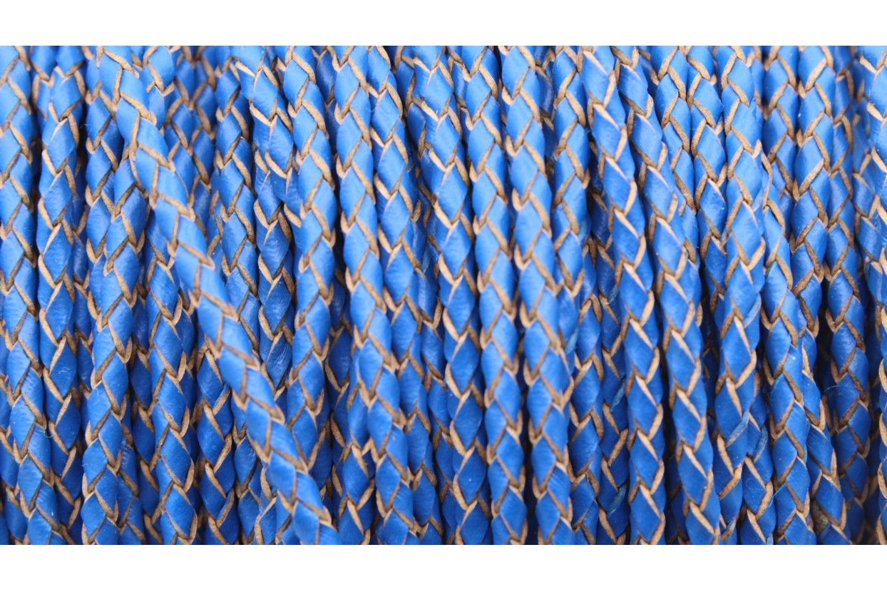 Braided Leather - 3mm - Blue - Price per meter quantity