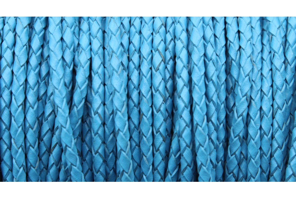 Braided Leather – 3mm – Lt Blue – Price per meter.