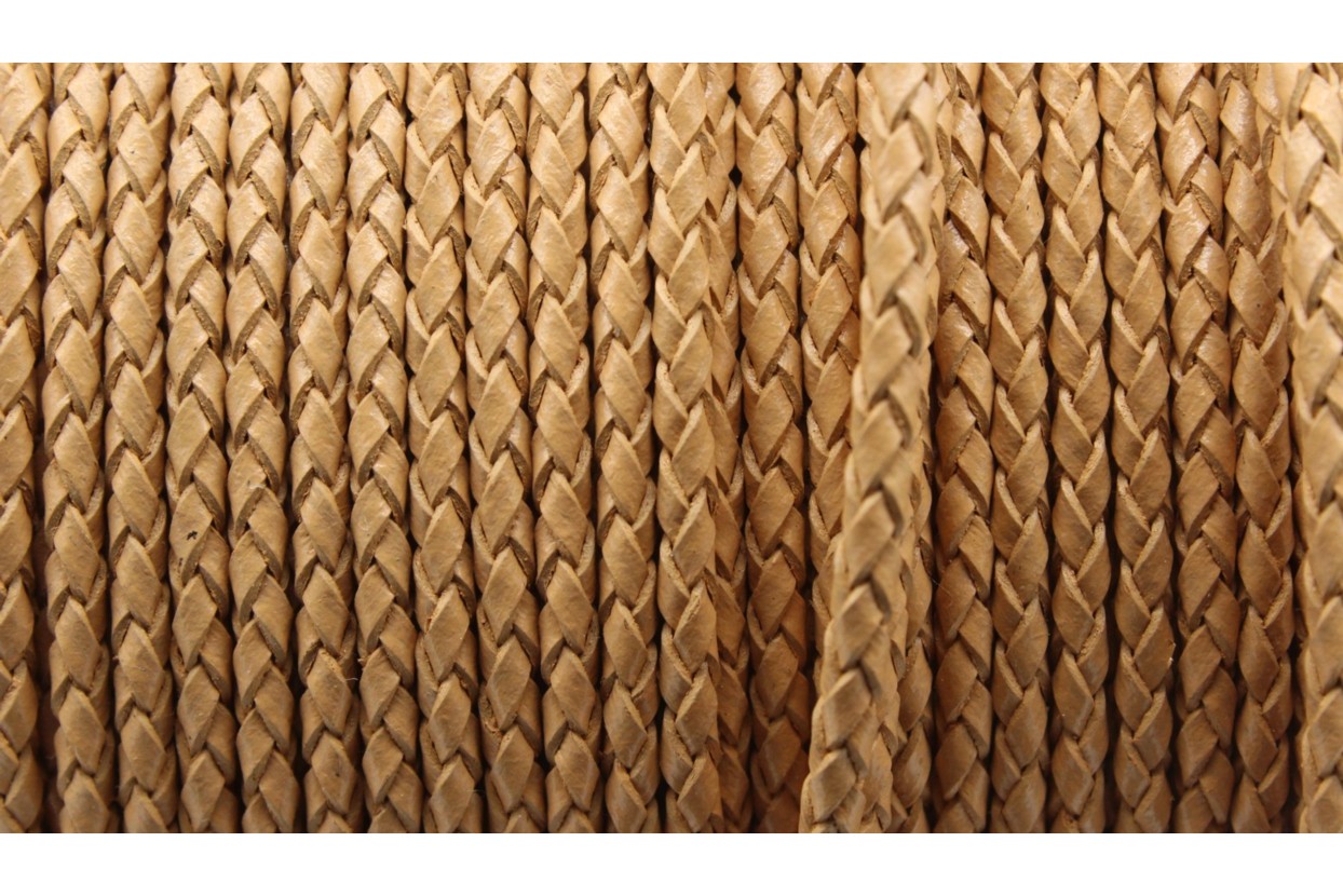 Braided Leather - 3mm - Tan - Price per meter quantity