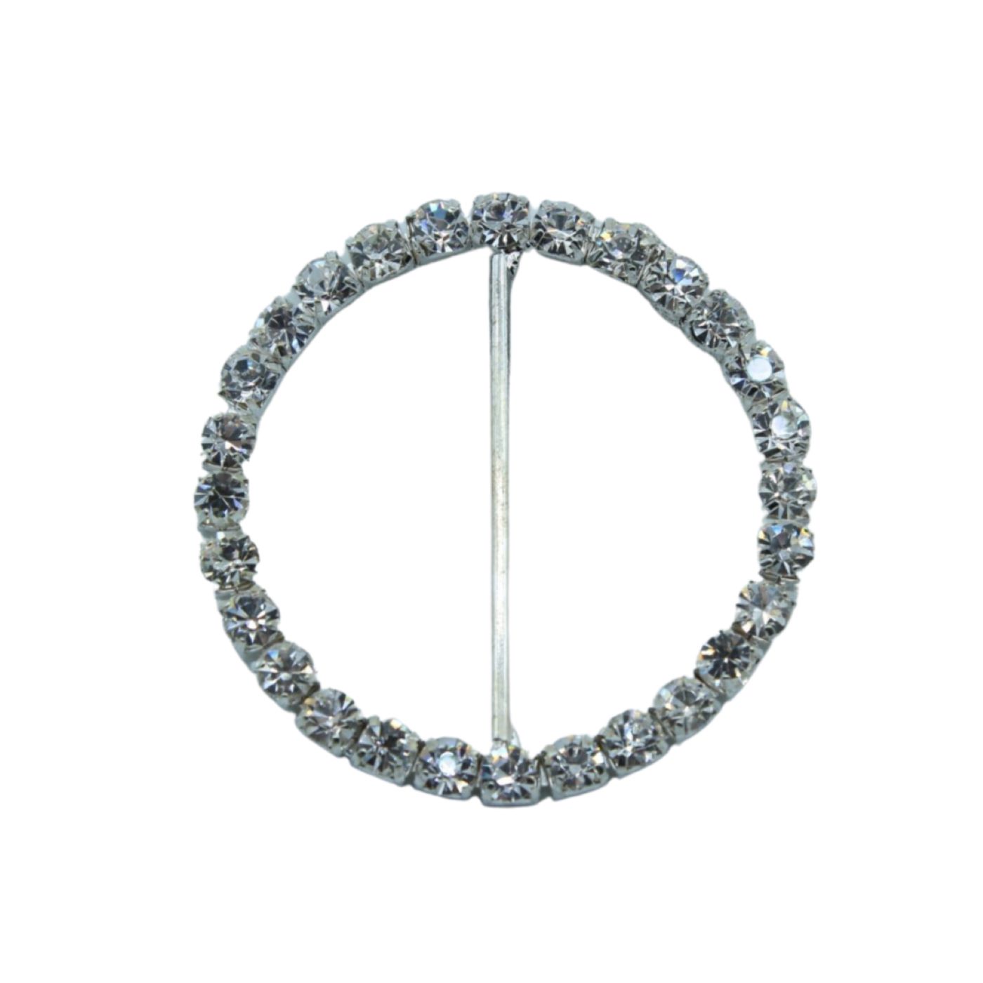 Buckle – Round – 40mm – Crystal / Silver. Plated. Metal.
