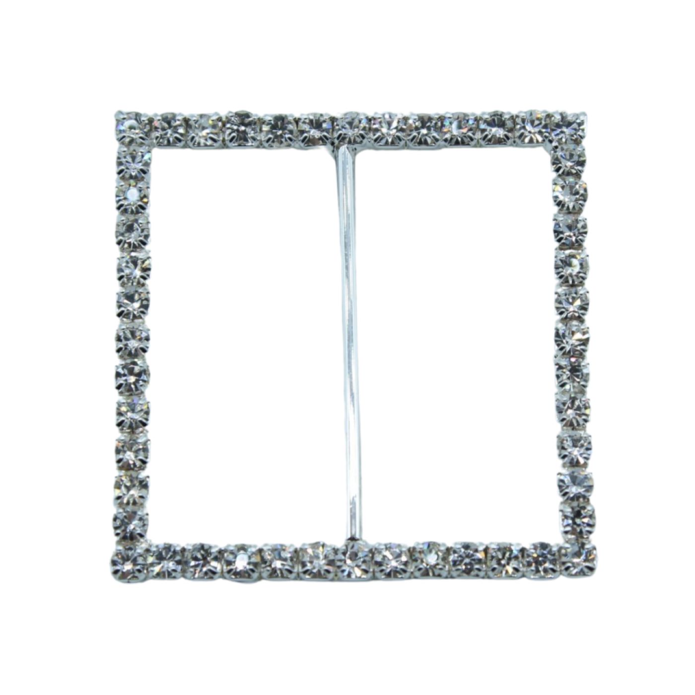 Buckle – Square – 40mm – Crystal / Silver. Plated. Metal.