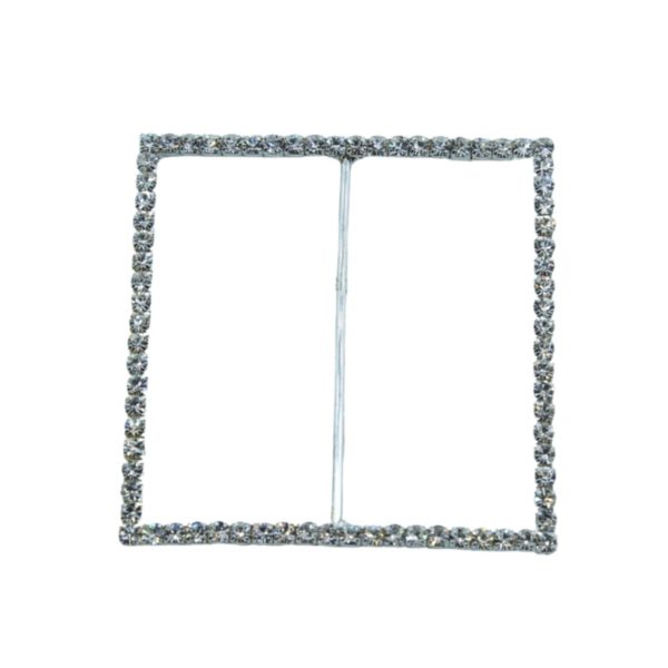 Buckle – Square – 60mm – Crystal / Silver. Plated. Metal.