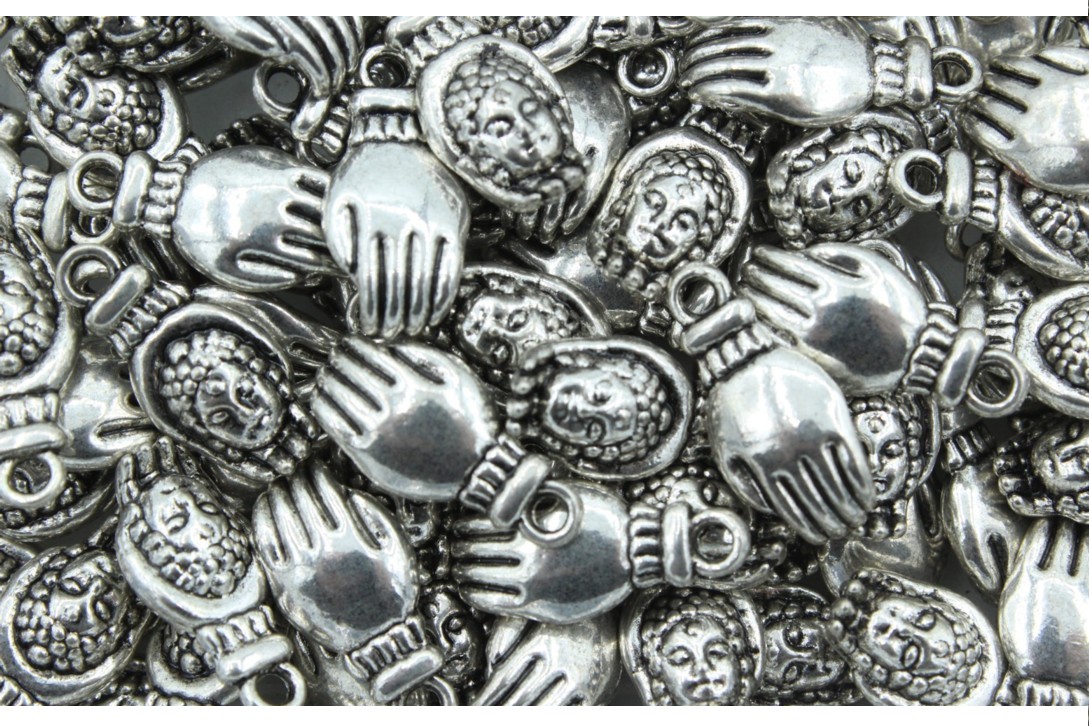 Buddha / Hand – 16 x 8mm – Antique Silver. Quality product. Metal Charm. Nickel Free. Plated.
