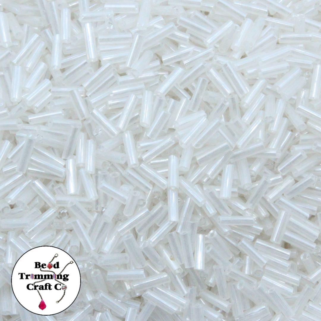 Bugle Bead – 7mm – Pearl Transparent – Price Per Gram.