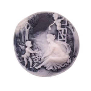 Cameo – 18mm – Round – Brown. Fairy & Goblin. High quality resin. Flat back. No Hole. Cameo can be drilled.
