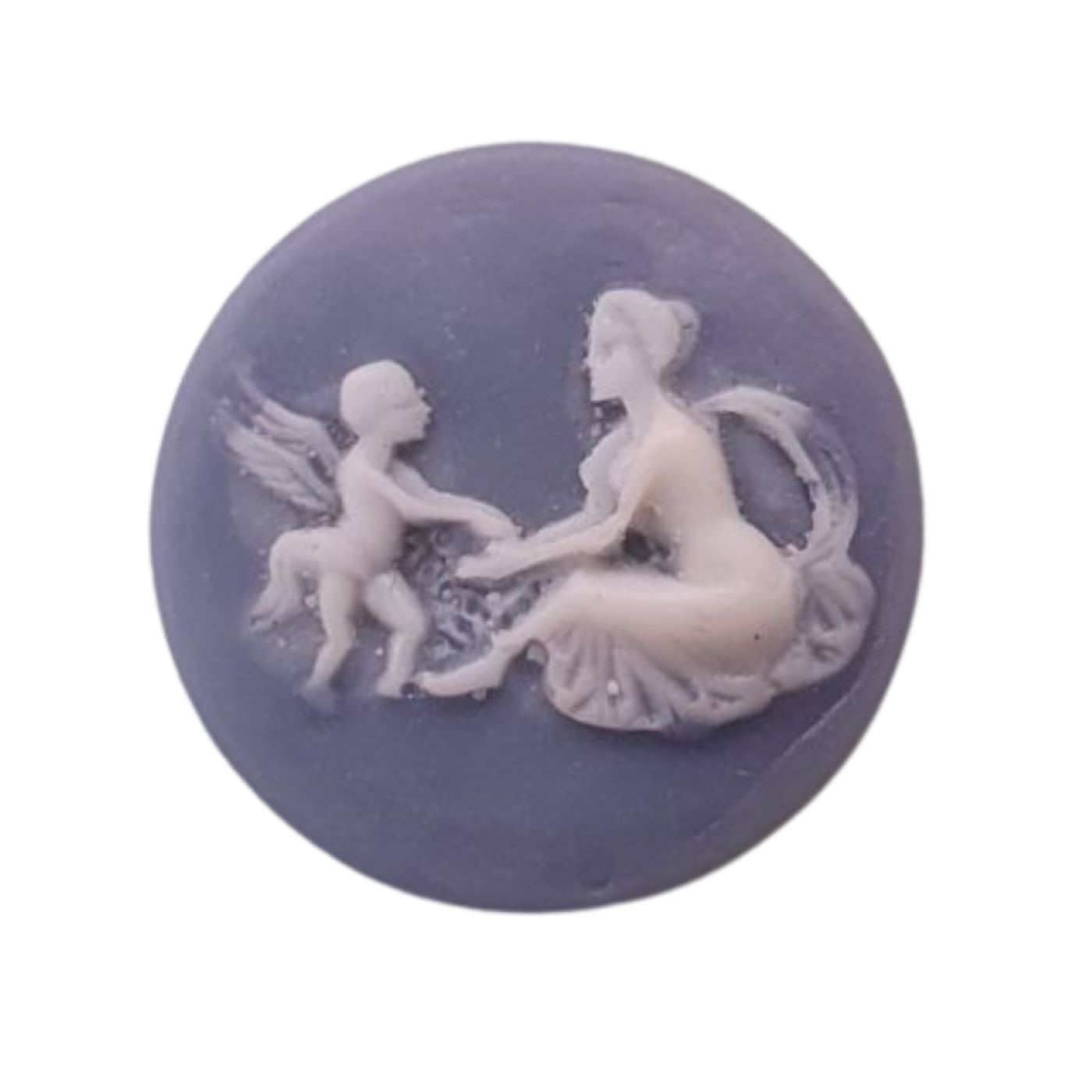 Cameo – 18mm – Round – Wedgewood. Fairy & Goblin. High quality resin. Flat back. No Hole. Cameo can be drilled.