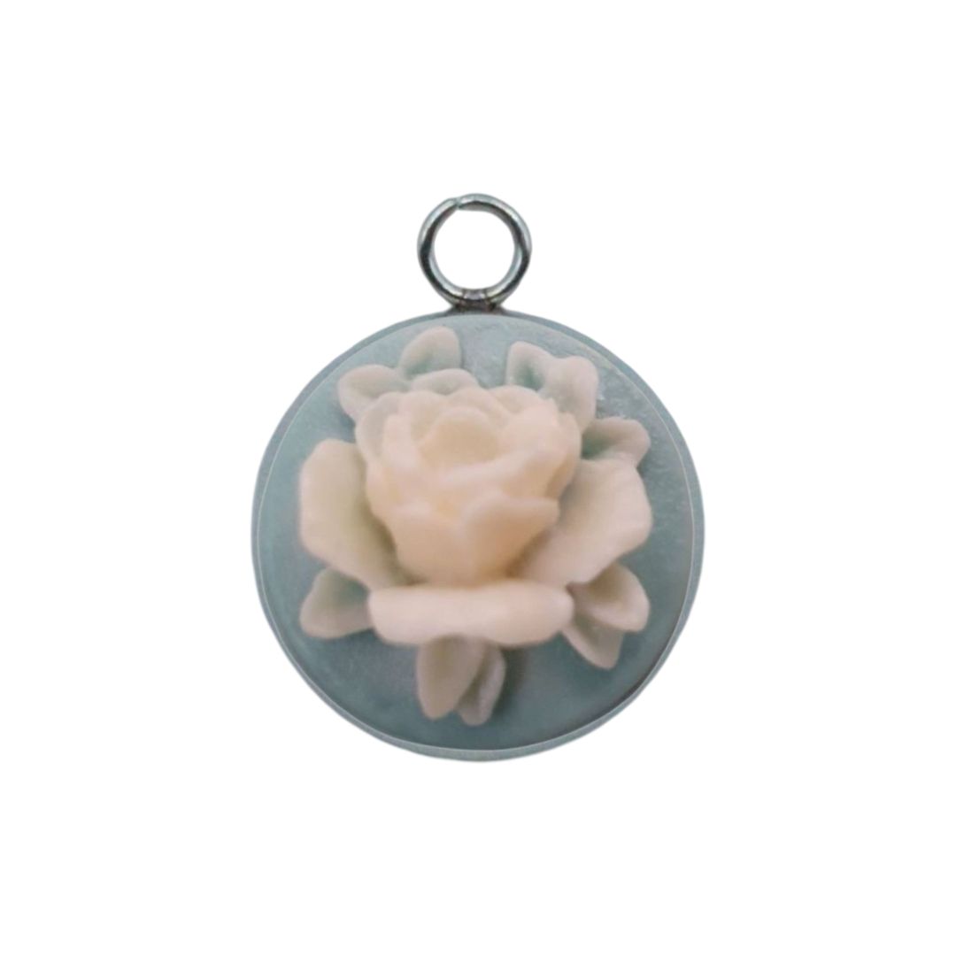 Cameo Charm – 18mm – Stainless Steel – Blue / Cream.